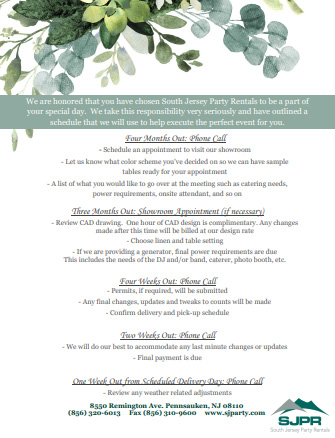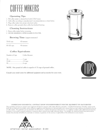 Forms & Guides Donation Request Form Download Form Beverage Fountains Download Form Coffee Makers Download Form Convection Ovens Download Form Cotton Candy Machines Download Form Linens Download Form Popcorn Machines Download Form Sno-Kone Machines Download Form Wedding FAQ Download Form Wedding TimeLine Download Form